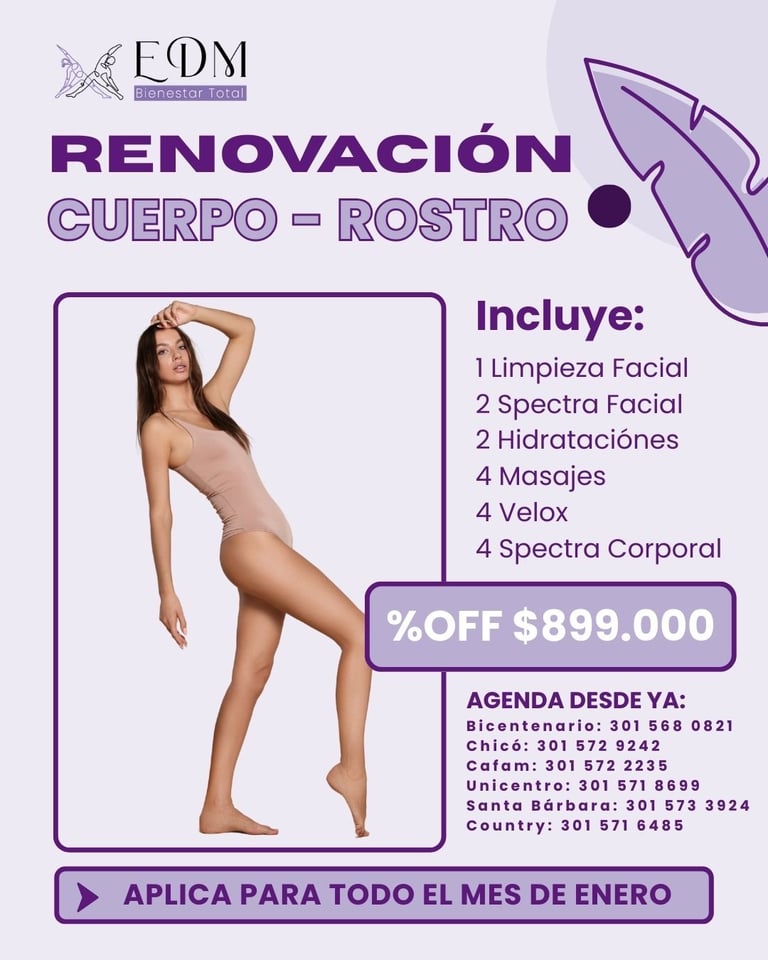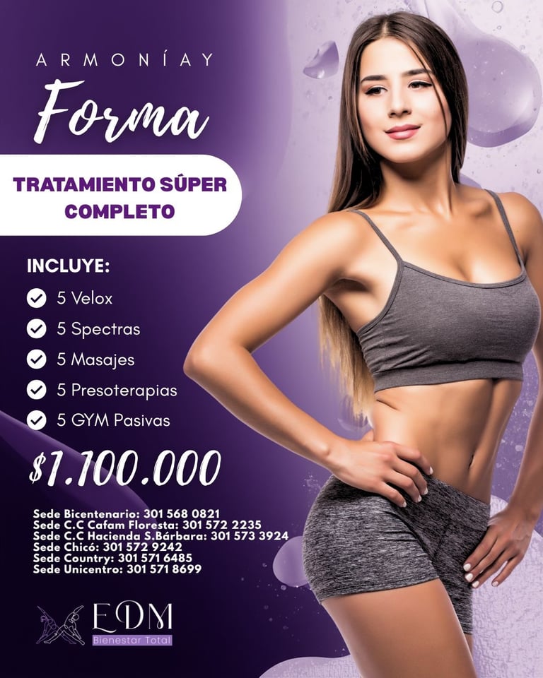 Centro de Estética, Gimnasio y Spa un sitio de bienestar integral con 6 sedes en la ciudad de Bogotá.